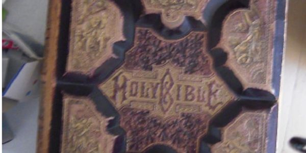 This is one of the 1870s Bibles that were also rescued, along with several other Bibles, ledgers, written records, photographs and a portrait of Ellen Gibbs, whose family helped found the congregation and who was a founding member of the historical society.