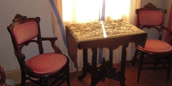 The photo above shows two antique chairs and a table that once graced the rooms of the church on Center Road. They are now in the parlor at Heritage Farm. From their age, they certainly came from the earlier buildings.